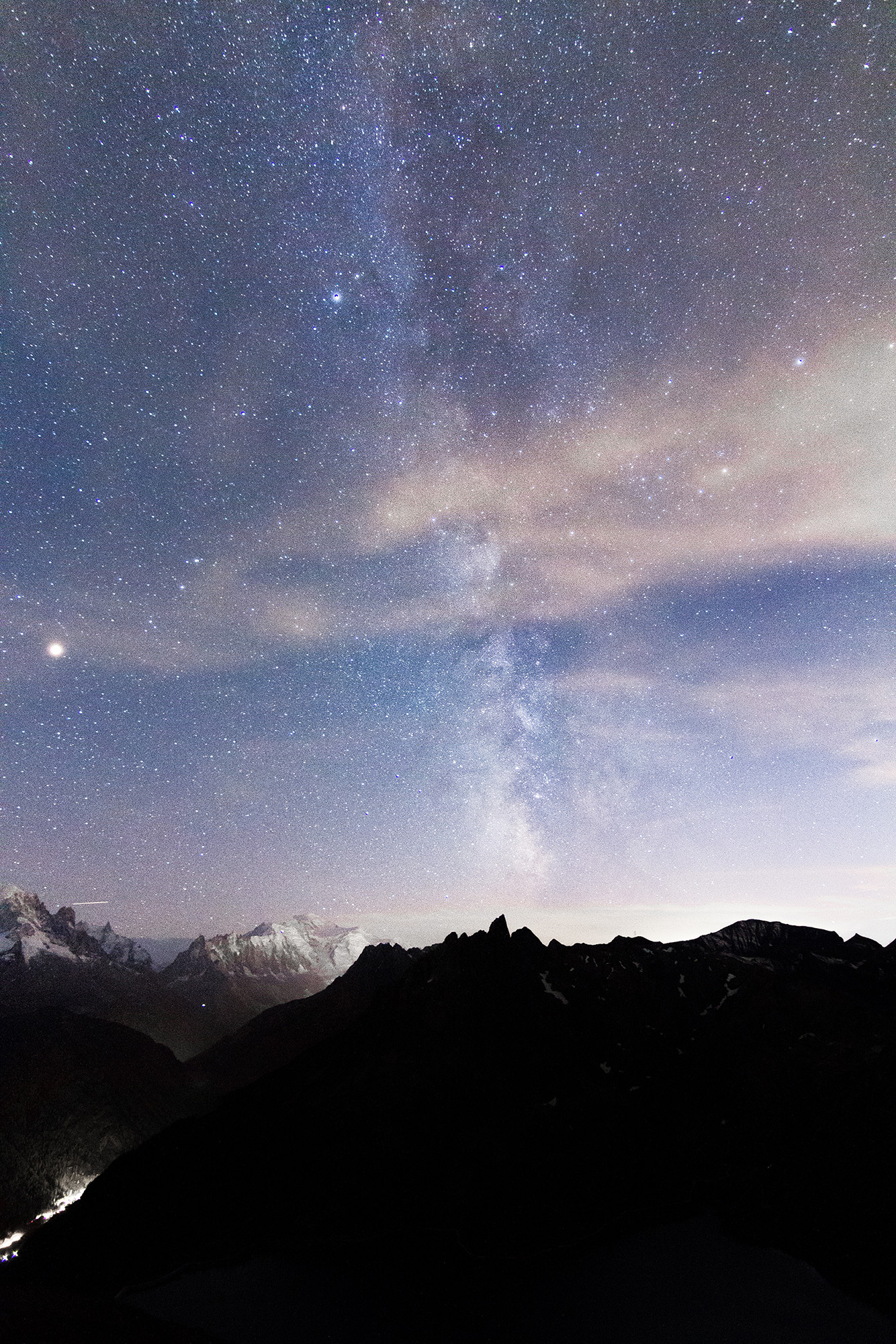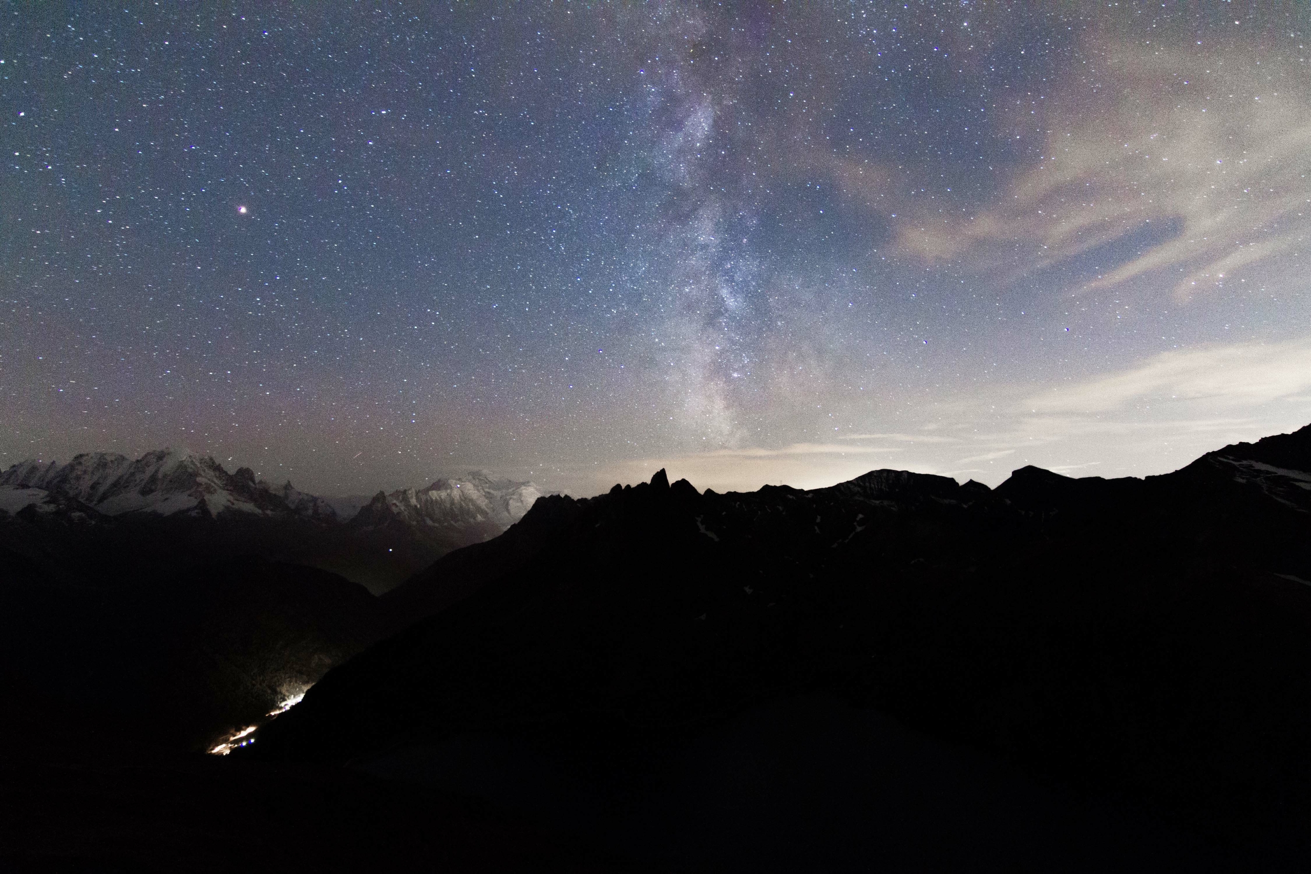 Cet été j’ai pu trouver un endroit facilement accessible en voiture pour m’évader la nuit et rejoindre les étoiles. Le barrage d’Emossons offre une vue de fond de vallée sur le massif du Mont Blanc donc je ne me lasse pas.